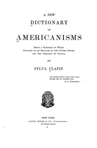 Read Online A new dictionary of Americanisms; being a glossary of words supposed to be peculiar to the United States and the Dominion of Canada Doc BookBoon
